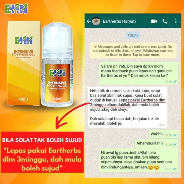 “Alhamdulillah sekarang dah boleh solat berdiri macam biasa selepas amalkan Gel EARTHHERBS ni..”