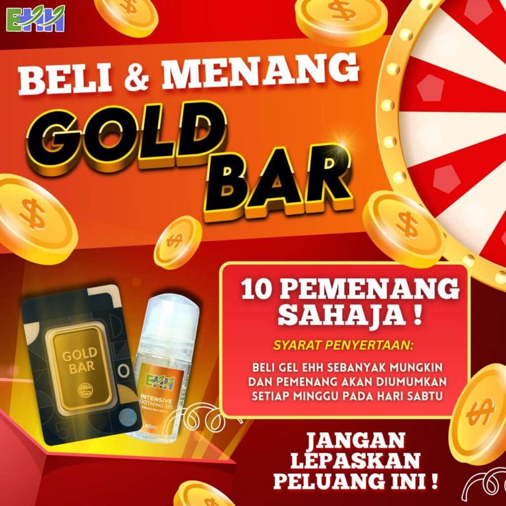 Sertai Peraduan EarthHerbs Beli & Menang! Cara penyertaannya mudah sahaja, beli sekurang-kurangnya 1 botol Gel EarthHerbs, anda automatik berpeluang memenangi Gold Bar Emas Tulen 999.9! Lagi banyak anda beli, lagi besar peluang anda menang!